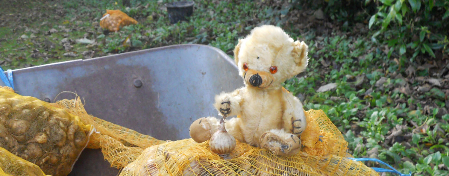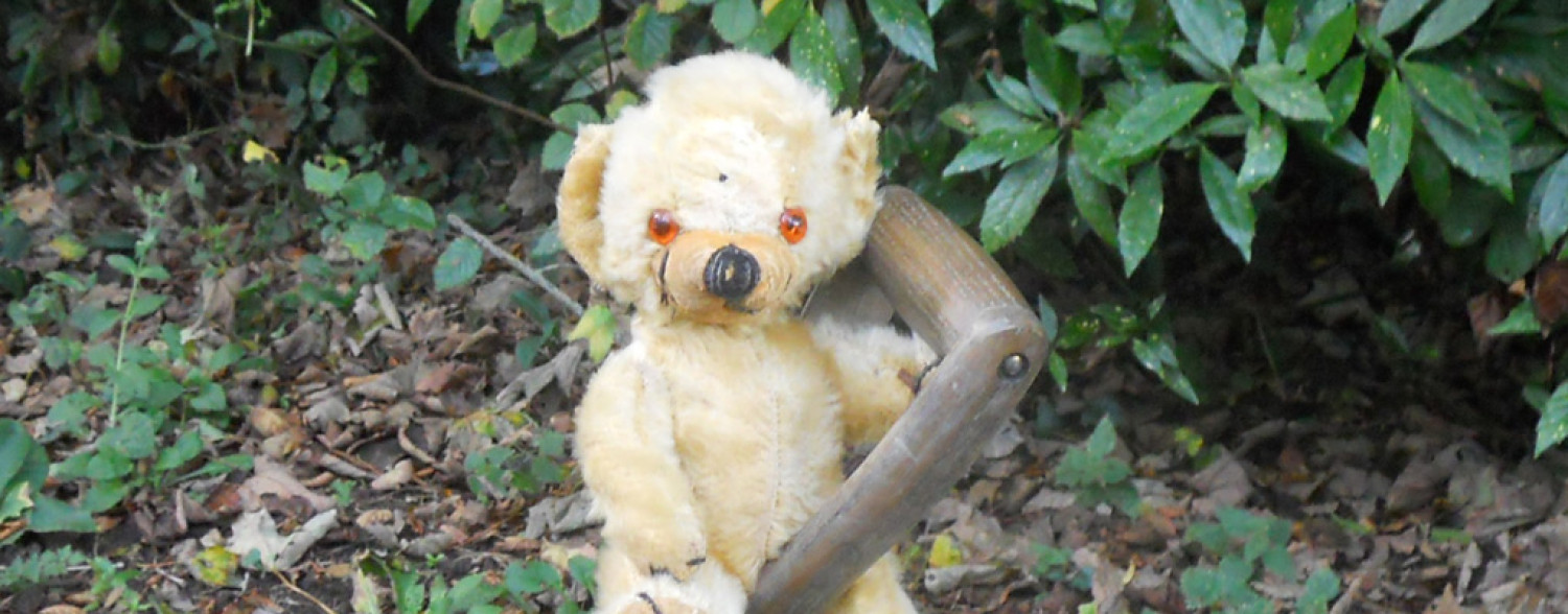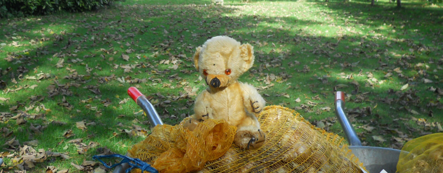 Me Too is a teddy who belongs to Peter Prideaux-Brune and has been a faithful companion from childhood, even sitting through Peter’s finals at Oxford, dressed in white tie just like his owner! By day he can be found on his perch in the Library under Peter’s portrait, but at night Me Too gathers all his friends at Prideaux Place, other bears, rabbits, the Labradors and even Carmen’s cats to join in the fun and games when the humans are fast asleep!